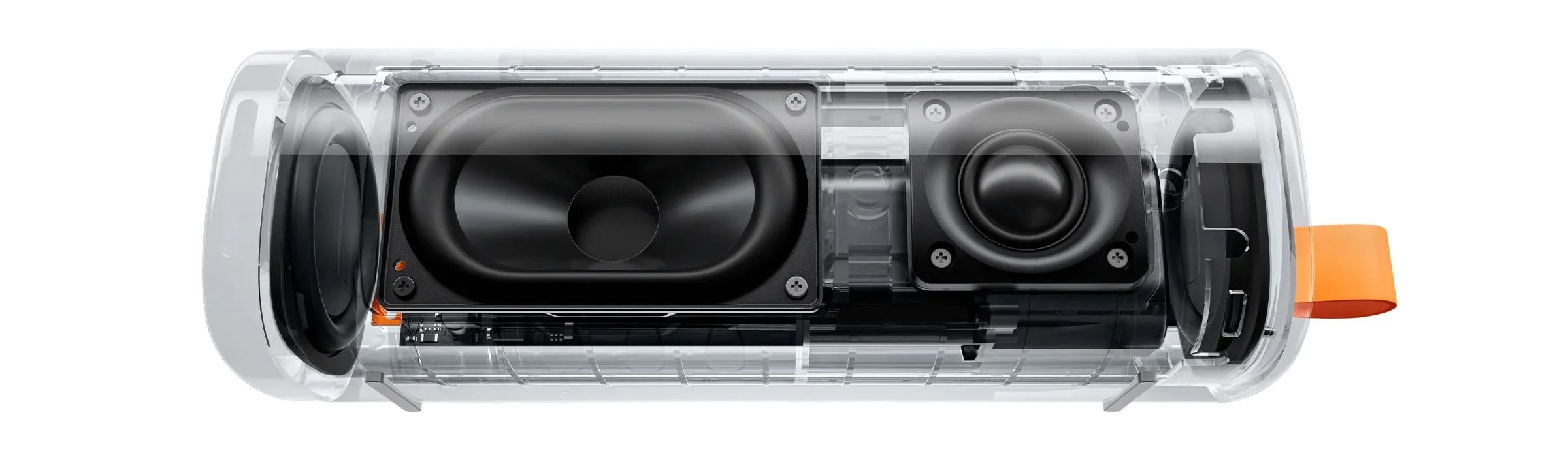 Exclusive subwoofer boost mode. Sound Outdoor is equipped with two large passive bass radiators on both sides, providing fuller and richer bass for a dynamic, natural and energetic sound.